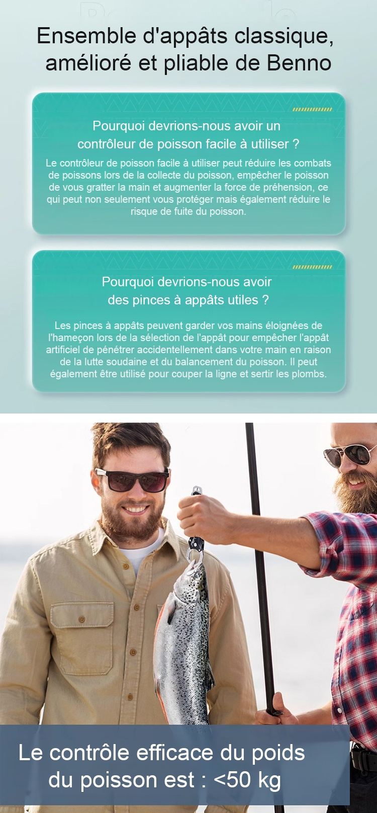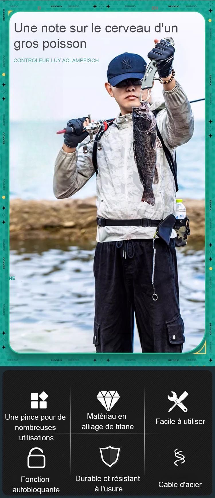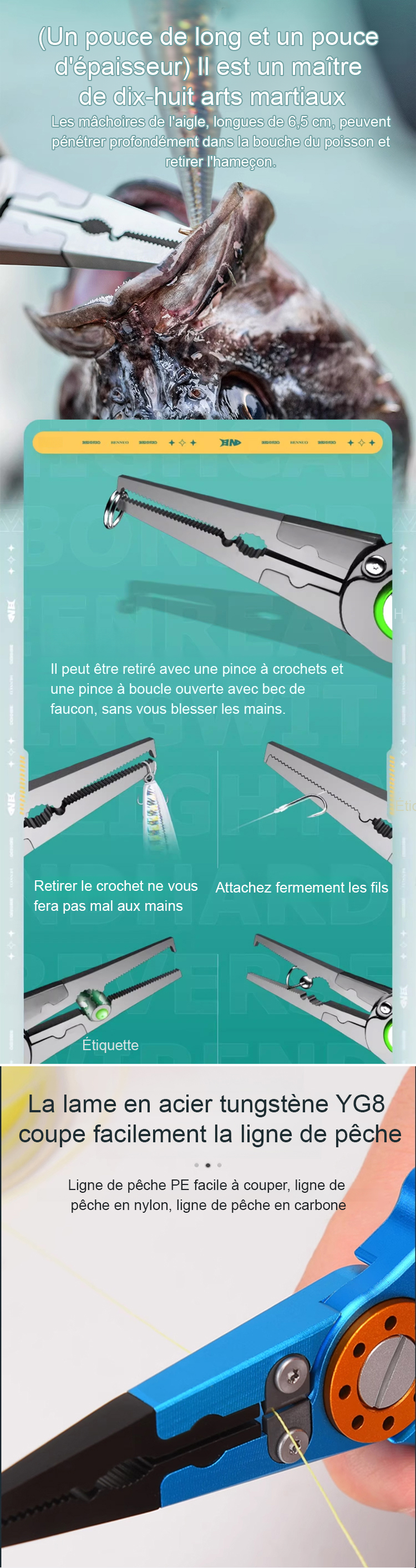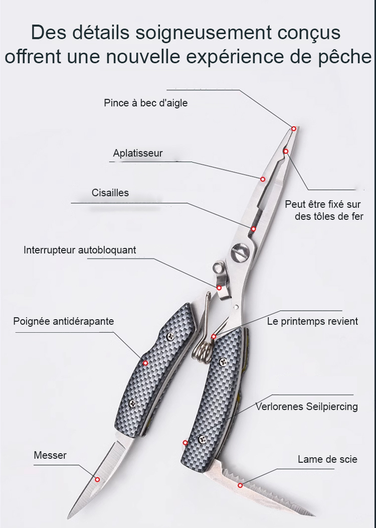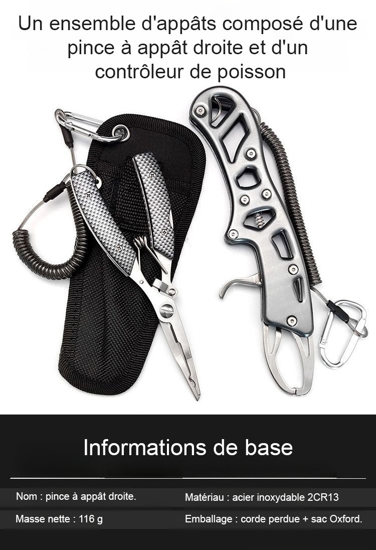 Ensemble de pinces de pêche en acier inoxydable à motif en grille